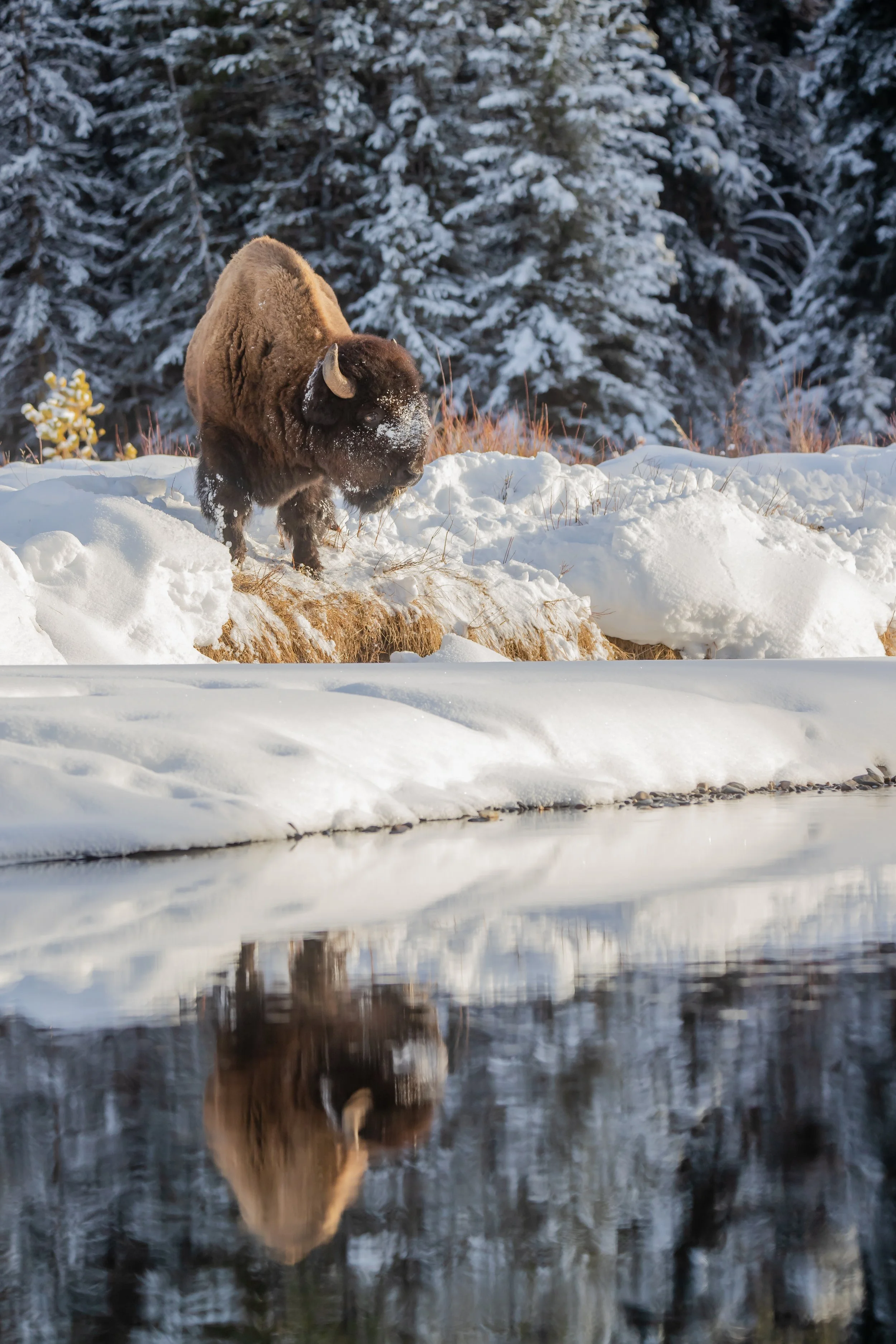 “I carefully made my way along the icy, narrow rock shelf, testing each step, not completely trusting the frozen ground in front of me. I looked down and forced myself to take a deep breath. The icy ledge abruptly ended, the ground hundreds of feet below. I was truly in the winter domain of the Mountain Goat.”
